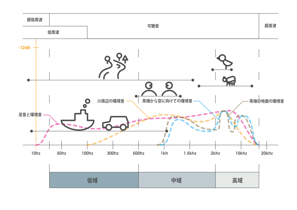 地面にいる虫や地面で聞こえる鳥の声が、とても気持ちが良かったので、その高めの帯域を生かしつつ中域から低域までカットさせて頂きました。